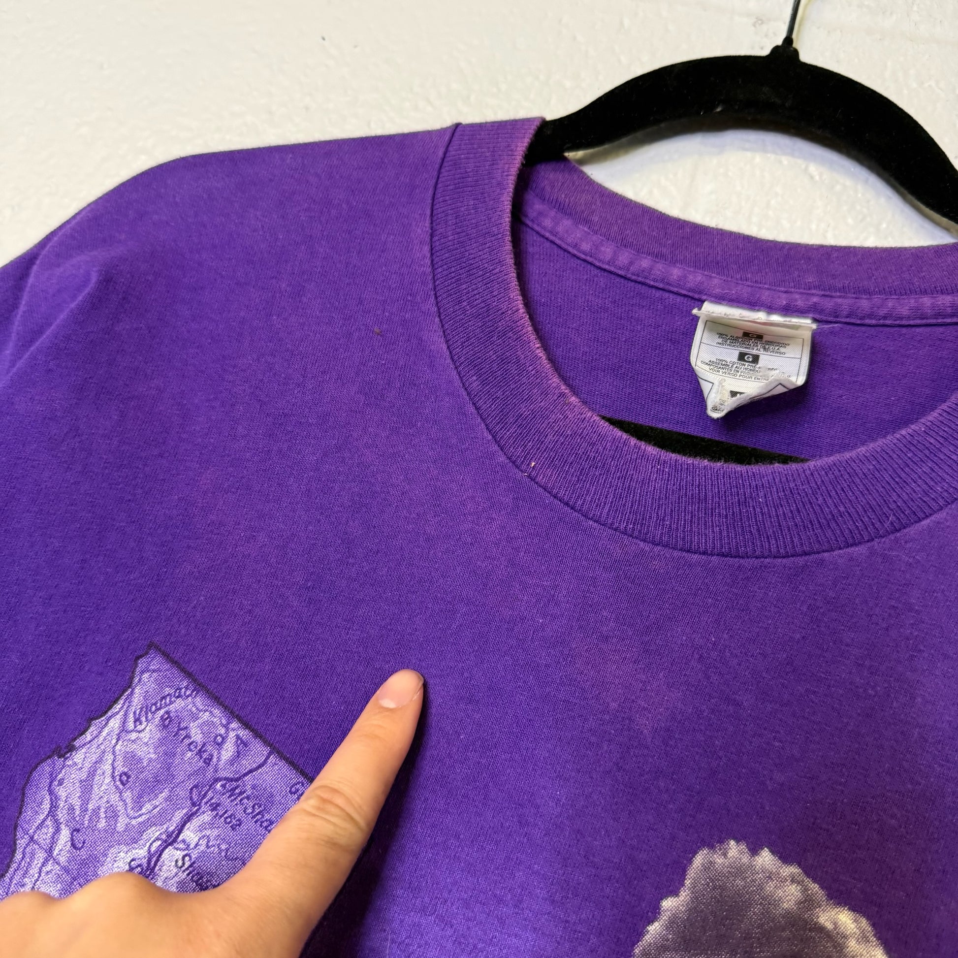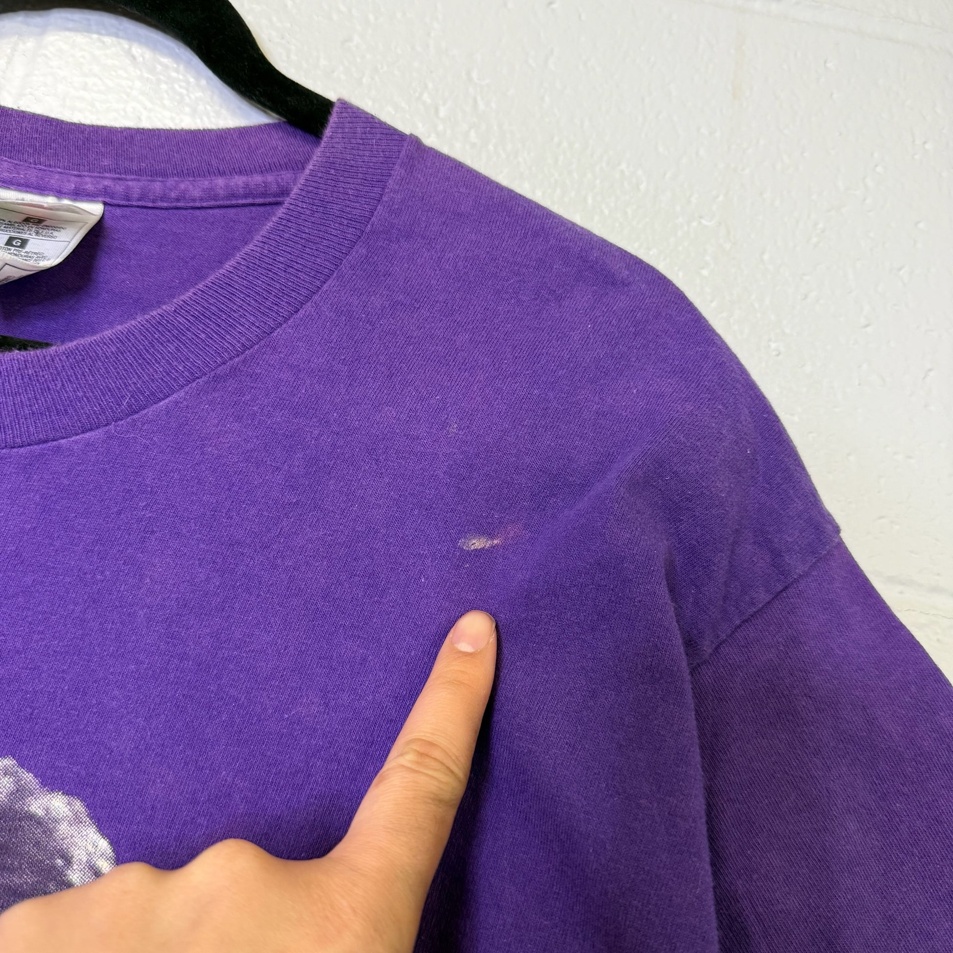 - Faded front around collar and stains as shown
