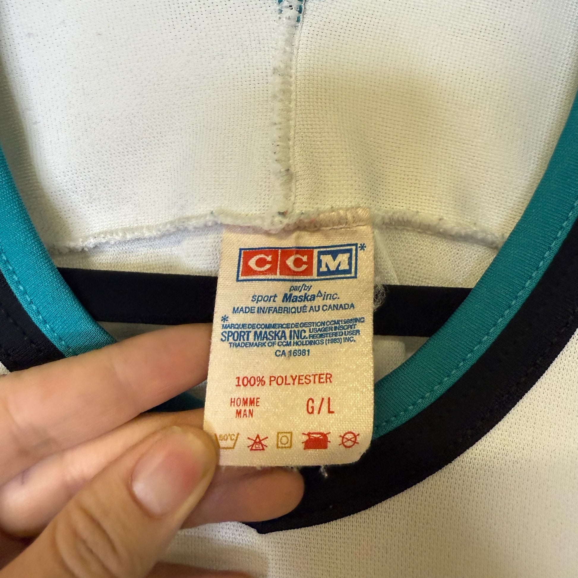 90s San Jose Sharks CCM NHL Hockey Jersey Sz L (B1805)