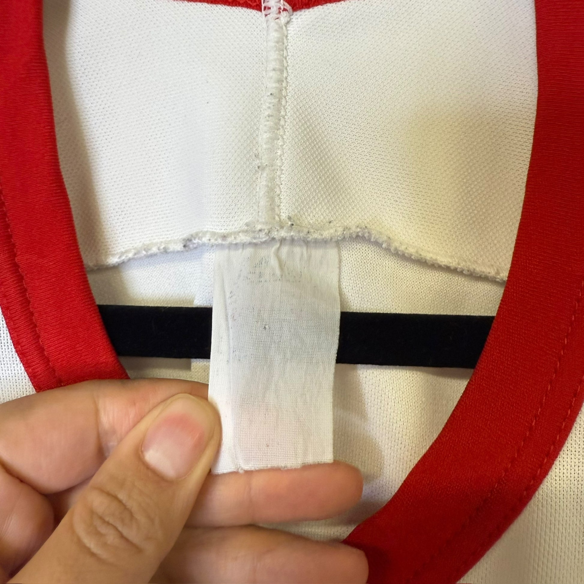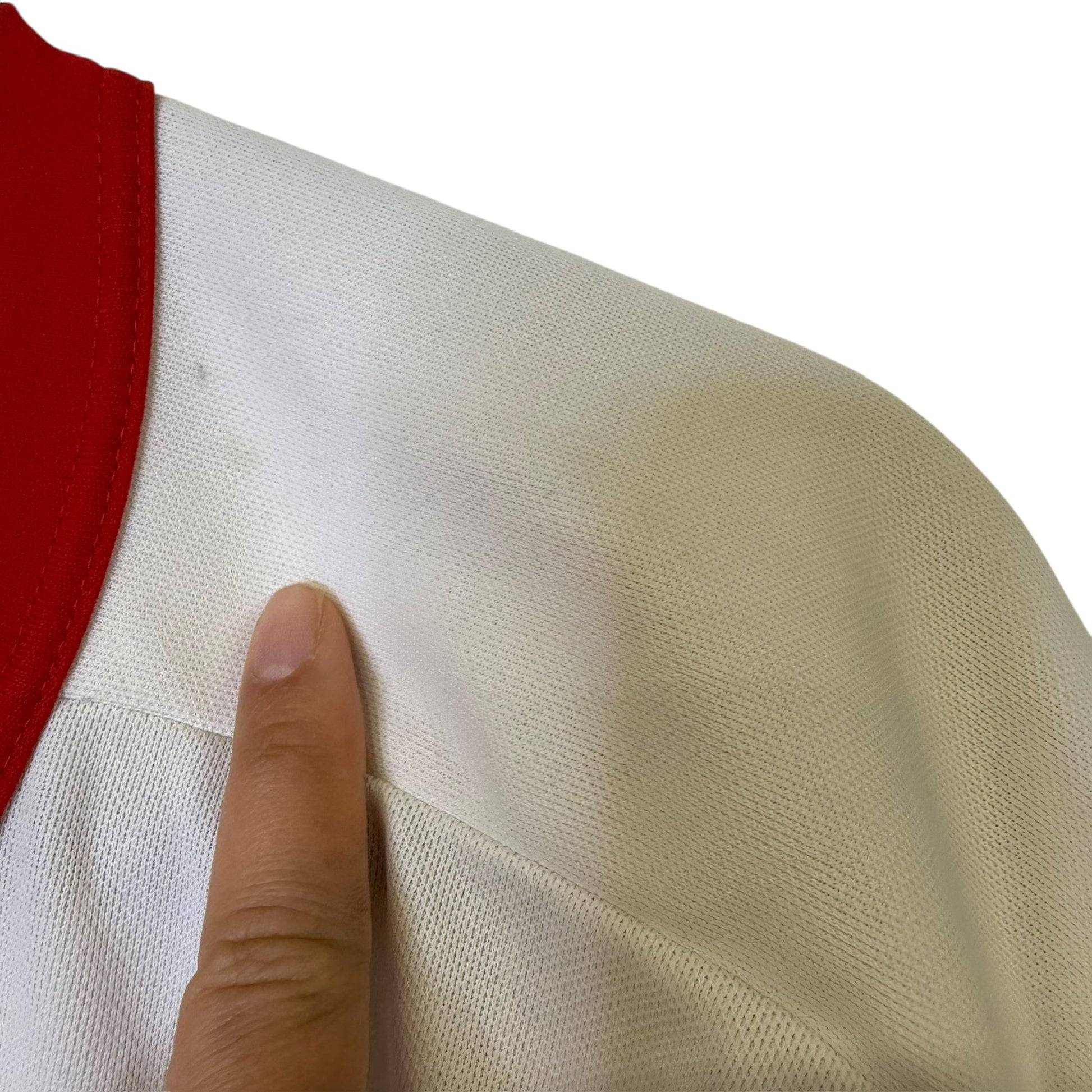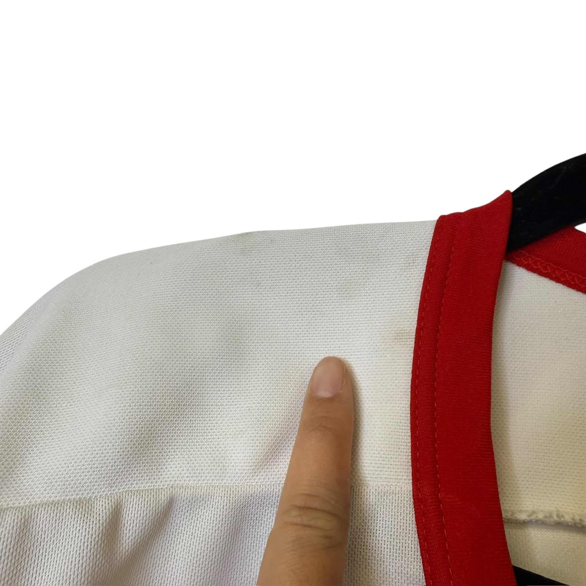 Stains around collar, faded CCM logo on back