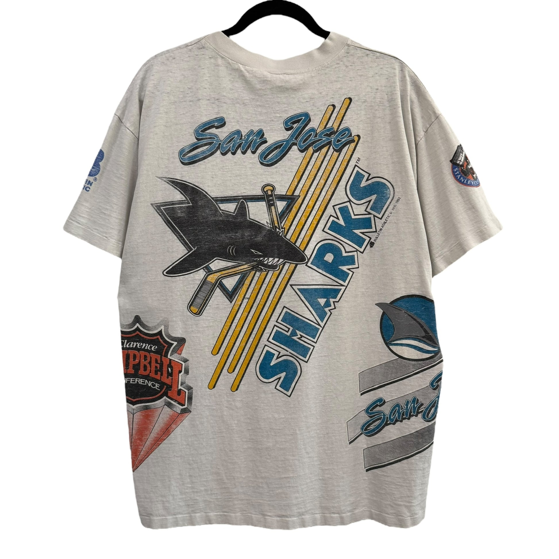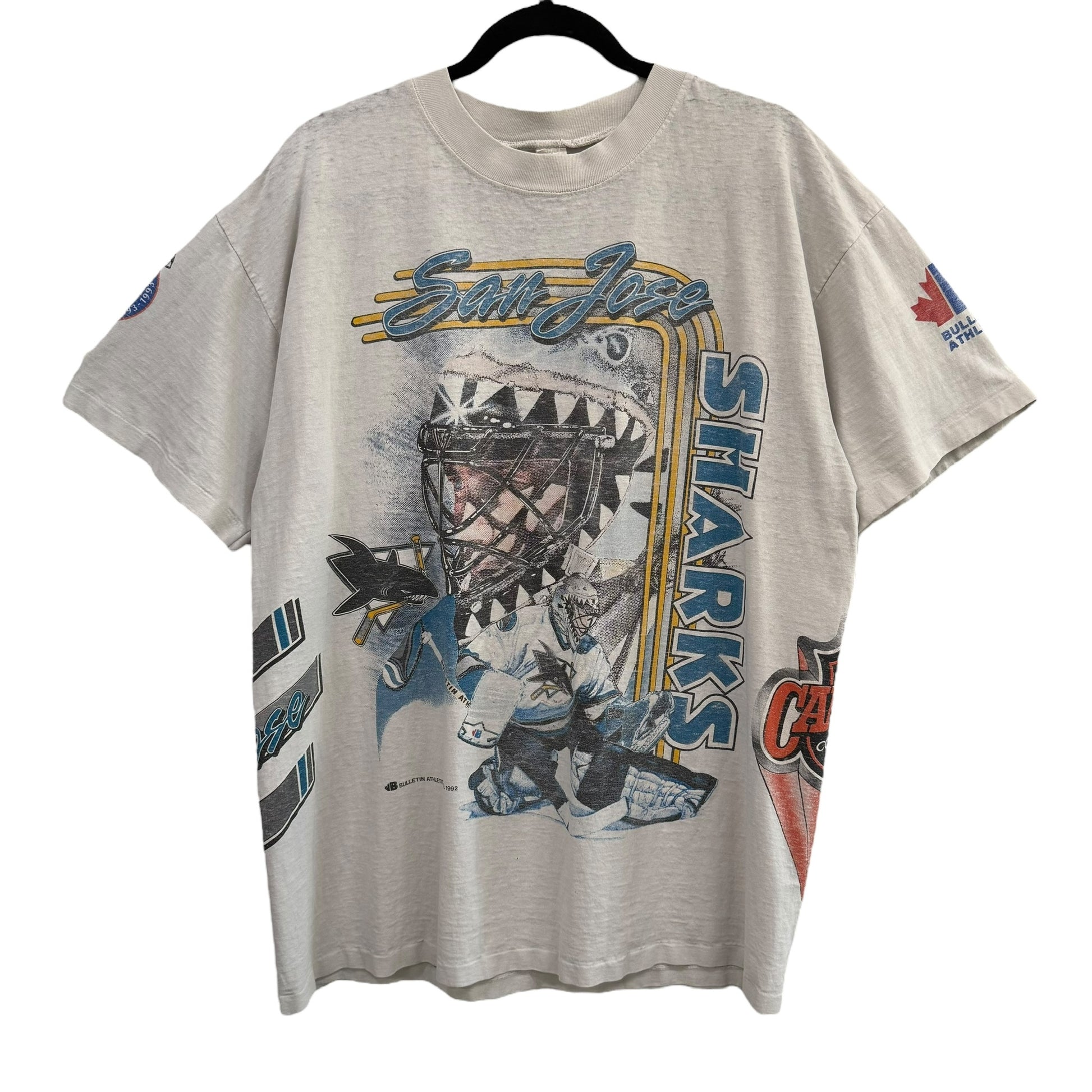 1992 San Jose Sharks NHL Bulletin AOP T-Shirt Sz XL