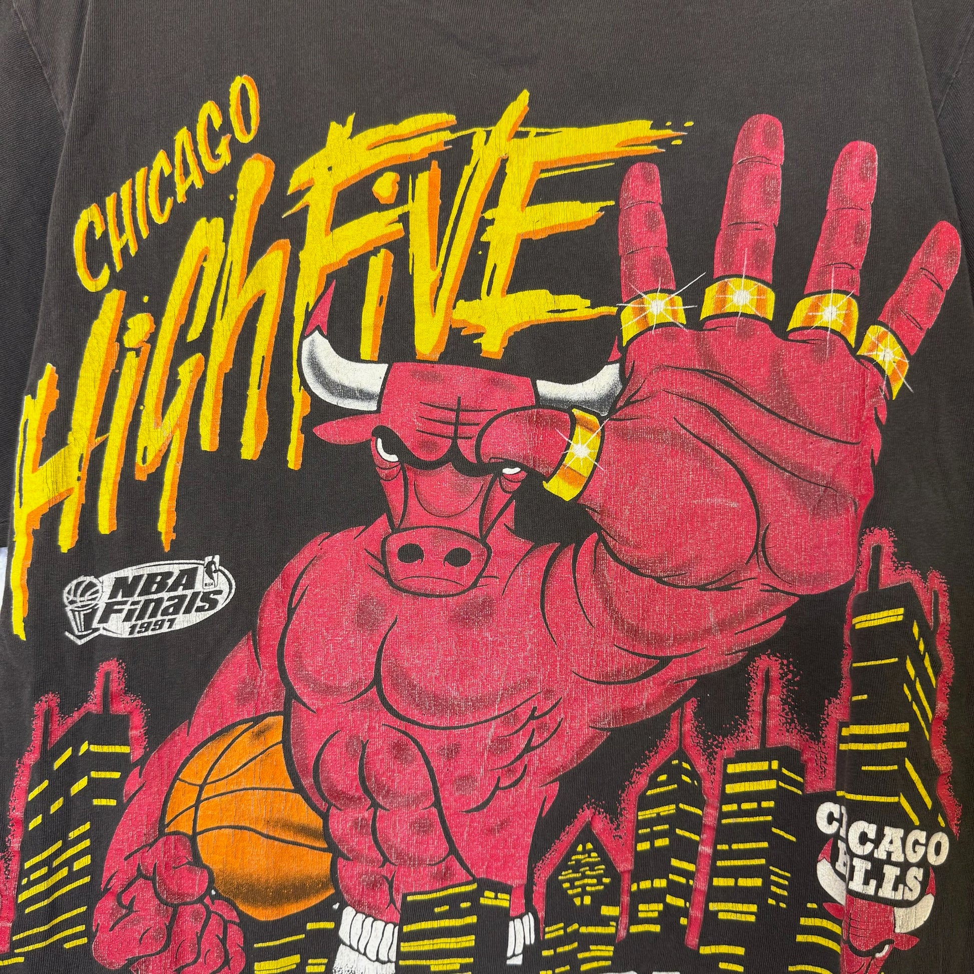 1997 Chicago Bulls High Five NBA T-shirt Sz L (B442)