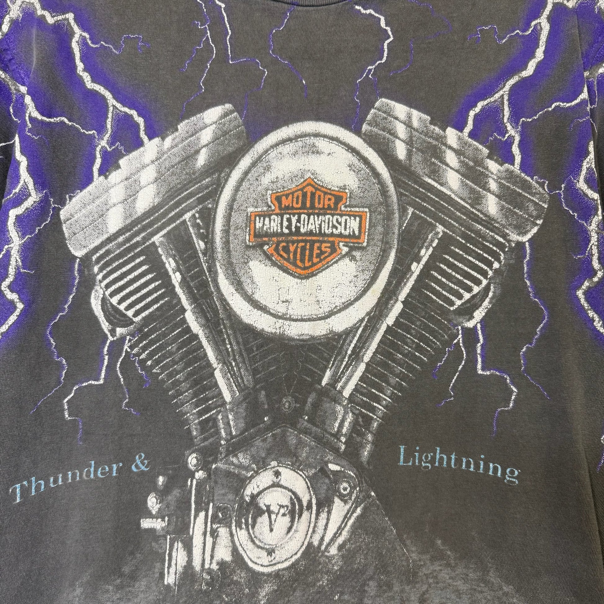 90's Harley Davidson Thunder & Lightning T-Shirt Sz M (B2268)